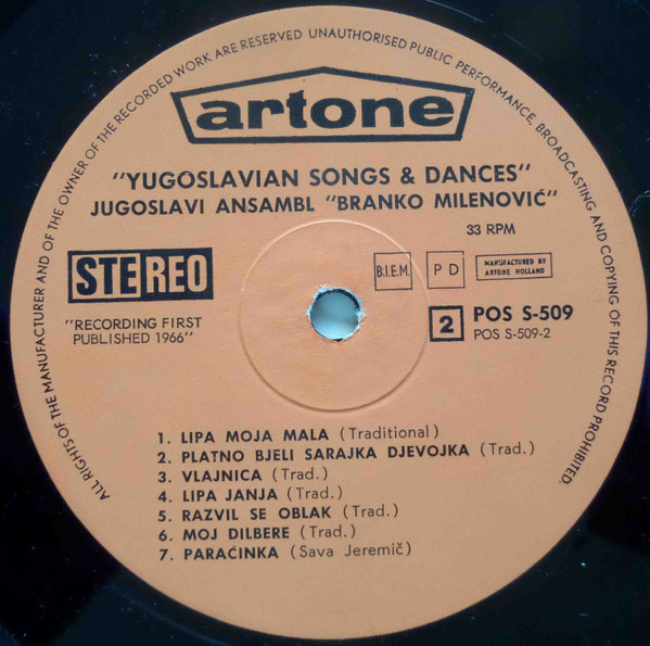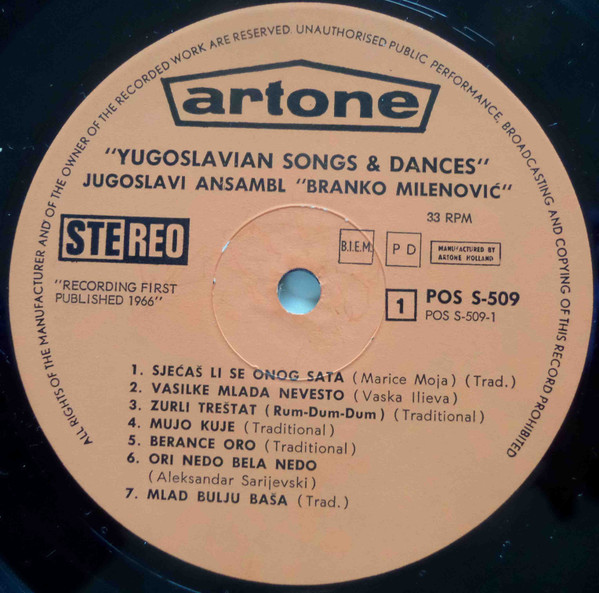 Ansambl Branka Milenovića – Yugoslavian Songs & Dances (LP, RE)