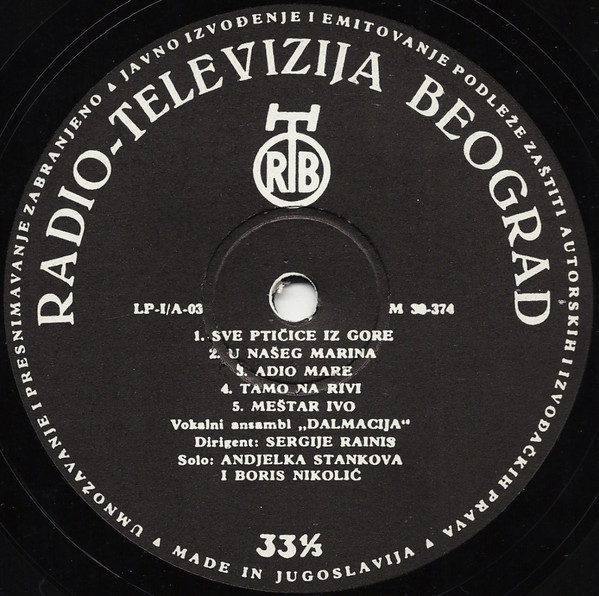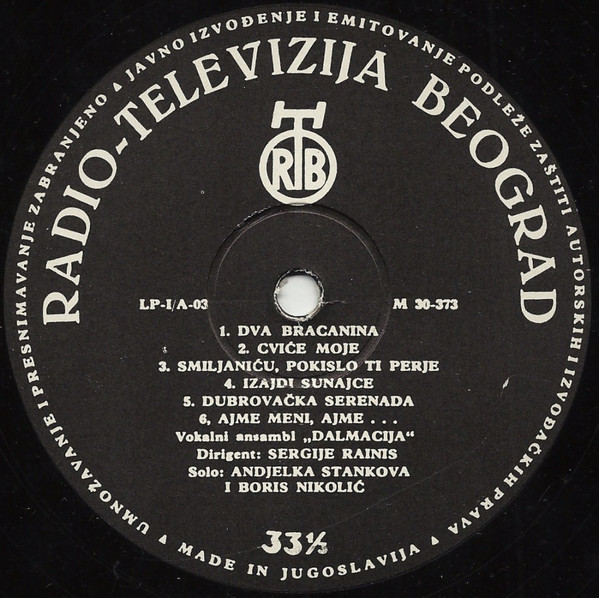 Ansambl “Dalmacija” – Dalmacija (10″, Album, Mono)
