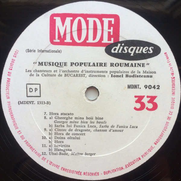 Ansamblul Tineretului Din București Direction: Ionel Budișteanu – Musique Populaire Roumaine (LP, Comp)