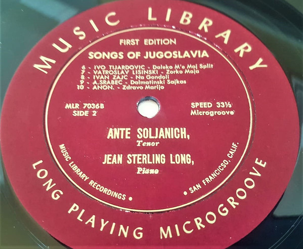 Ante Soljanić – Ante Soljanich Sings Songs Of Yugoslavia (LP, Album)