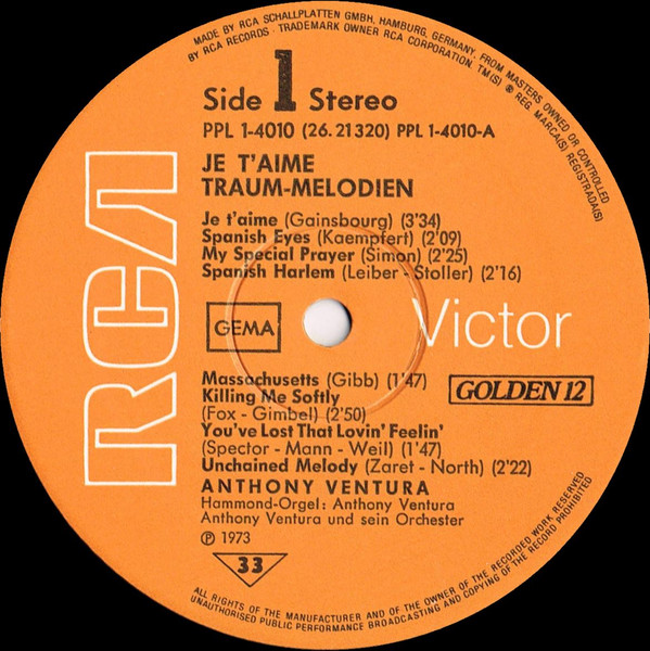 Anthony Ventura Und Sein Orchester* – Je T’aime (Traum-Melodien) (LP, RP)