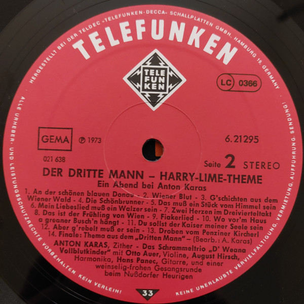 Anton Karas – Der Dritte Mann – Harry-Lime-Theme – Ein Abend Bei Anton Karas (LP, RE)