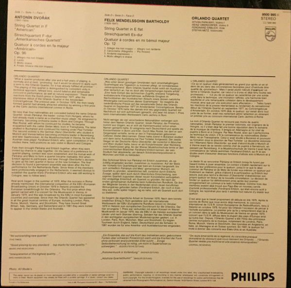 Antonín Dvořák / Felix Mendelssohn-Bartholdy – Orlando Quartet – String Quartet in F Op.96 “American” / String Quartet No.1 in E flat, Op.12 (LP, Album)