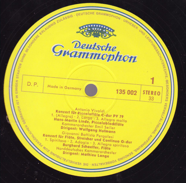 Antonio Vivaldi / Giovanni Battista Pergolesi / Jean-Marie Leclair / Robert Woodcock — Hans-Martin Linde Und Burghard Schaeffer – Flötenkonzerte Des Barock (LP, Comp)