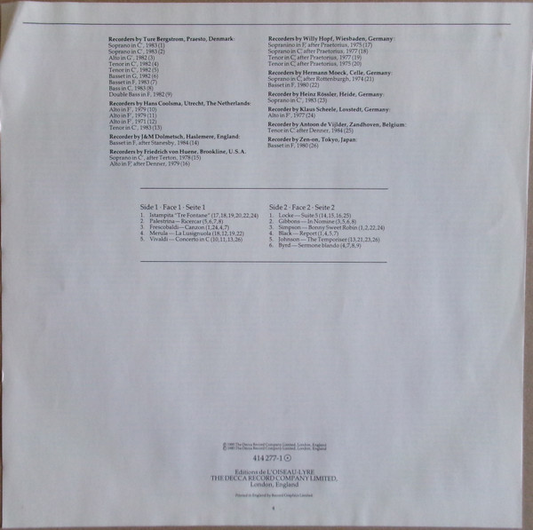Antonio Vivaldi • Girolamo Frescobaldi • Giovanni Pierluigi Da Palestrina • Matthew Locke • Orlando Gibbons • William Byrd – Amsterdam Loeki Stardust Quartet – Virtuoso Recorder Music • La Flûte À Bec Virtuose • Die Virtuose Blockflöte (LP, Album, Pur)