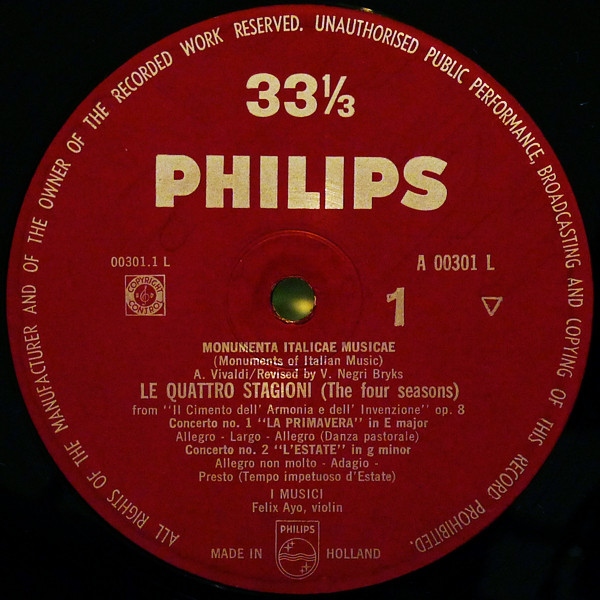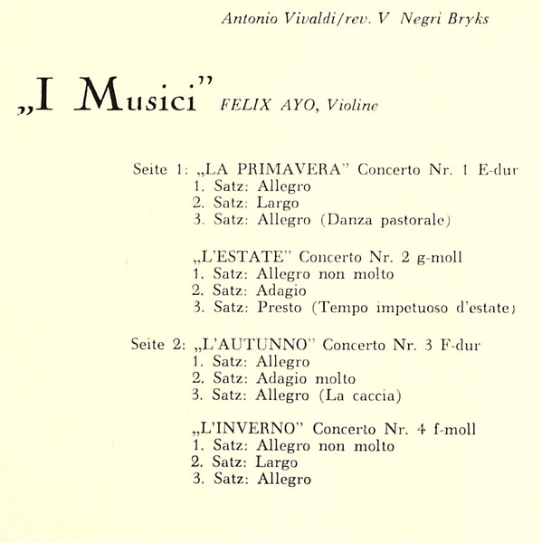 Antonio Vivaldi – I Musici, Félix Ayo – Le Quattro Stagioni (LP, Mono, RP, 33 )