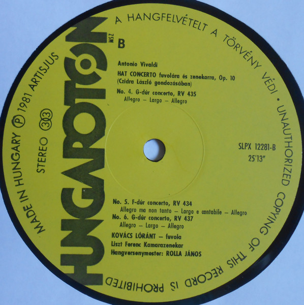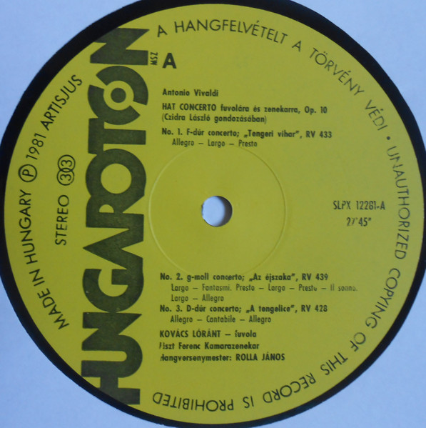 Antonio Vivaldi – Kovács Lóránt, Liszt Ferenc Chamber Orchestra, János Rolla – Six Flute Concerti (LP, Hun)