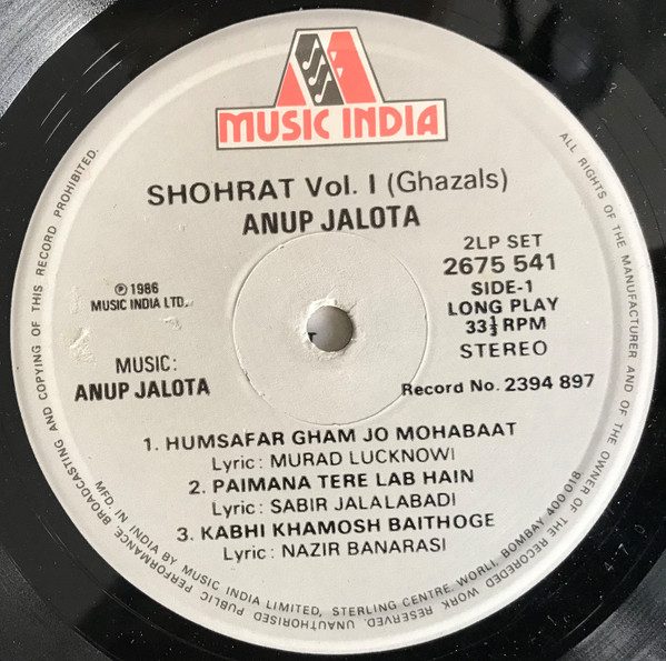 Anup Jalota – Shohrat (Ghazals) (2xLP, Album, Comp, Gat)