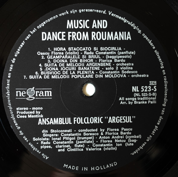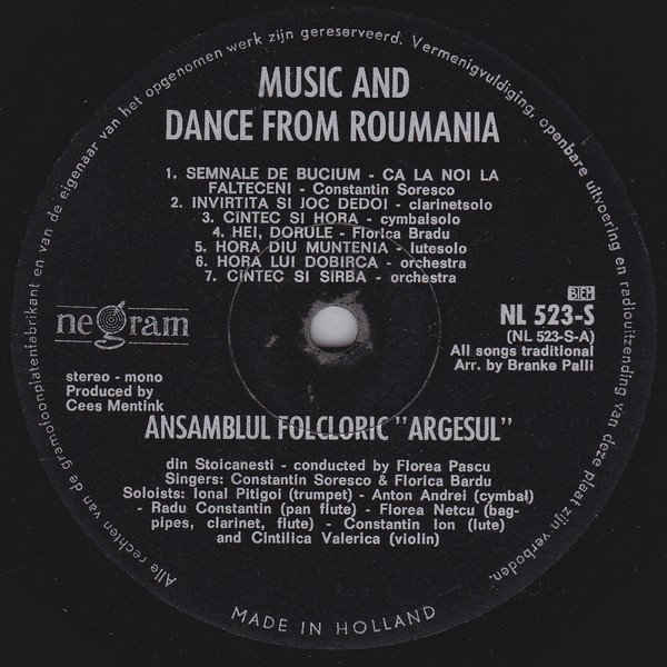 Argesul Folk Ensemble – Music And Dance From Roumania (LP)