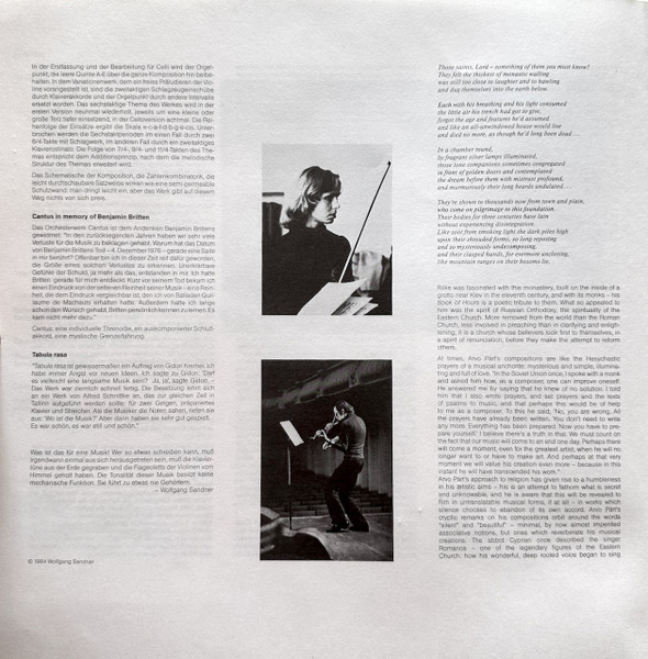 Arvo Pärt – Tabula Rasa (LP, Album, Gat)