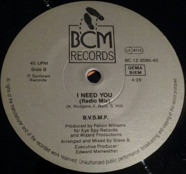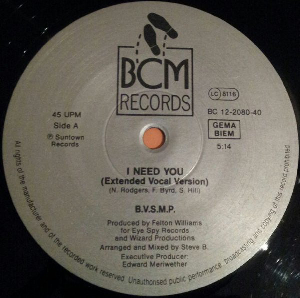 B.V.S.M.P. – I Need You (12″)