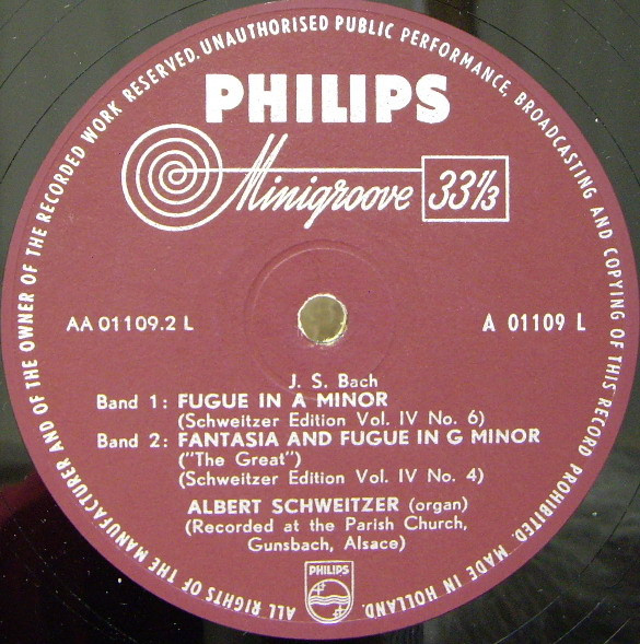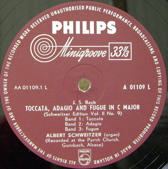 Bach*, Albert Schweitzer – Toccata, Adagio And Fuge C Minor – Fugue In A Minor – Fantasia And Fugue In G Minor – Vol. 1 (LP, Album, Mono)