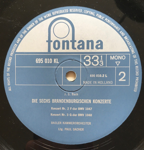 Bach* – Basle Chamber Orchestra*, Paul Sacher – Brandenburg Concertos Nos. 1, 2, 3 (LP, Mono)