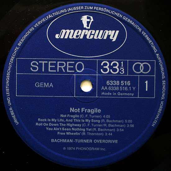 Bachman-Turner Overdrive – Not Fragile (LP, Album, Gat)