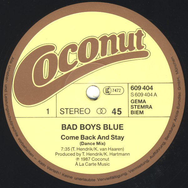 Bad Boys Blue – Come Back And Stay (12″, Maxi)