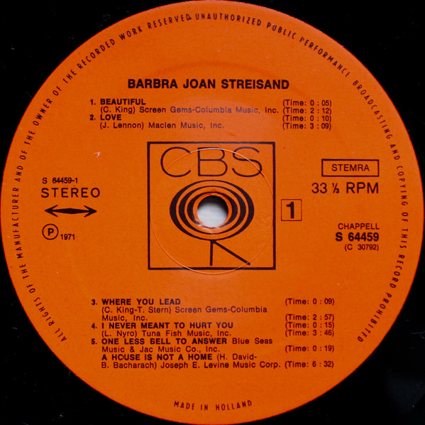 Barbra Streisand – Barbra Joan Streisand (LP, Album, Gat)