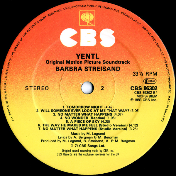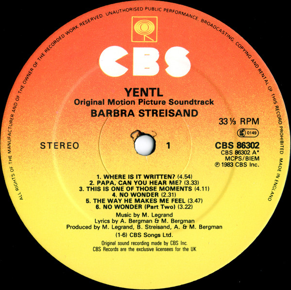 Barbra Streisand – Yentl – Original Motion Picture Soundtrack (LP, Album, Sun)
