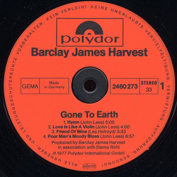 Barclay James Harvest – Gone To Earth (LP, Album, RE, RP)