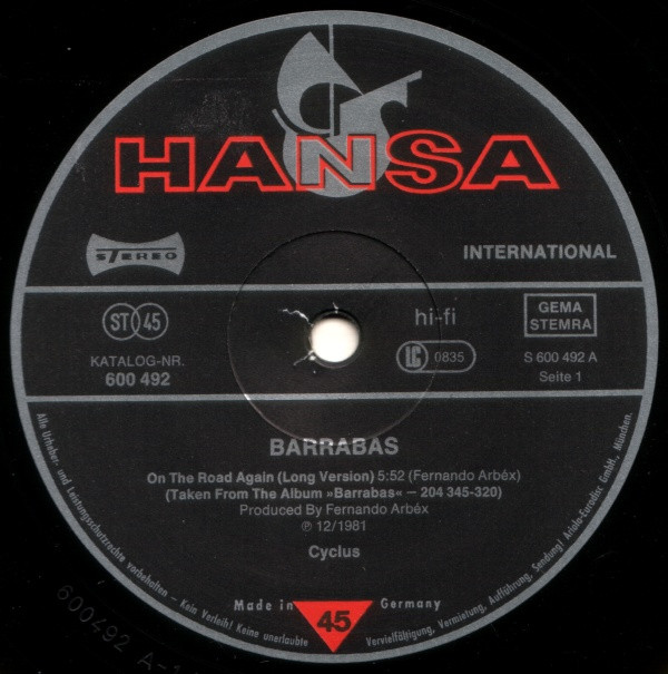 Barrabas – On The Road Again (Long Version) (12″, Sup)