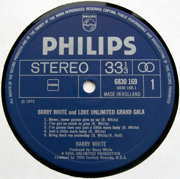 A1. Barry White – Never, Never Gonna Give Ya Up 3:58