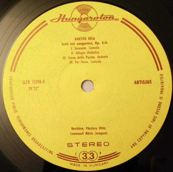 Bartók Béla* – Ditta Pásztory-Bartók, Mária Comensoli*, Erzsébet Tusa*, Ferenc Petz*, József Marton*, Budapest Symphony Orchestra Conducted By János Sándor* – Suite For Two Pianos, Op. 4 B / Concerto For Two Pianos, Percussion And Orchestra (LP)