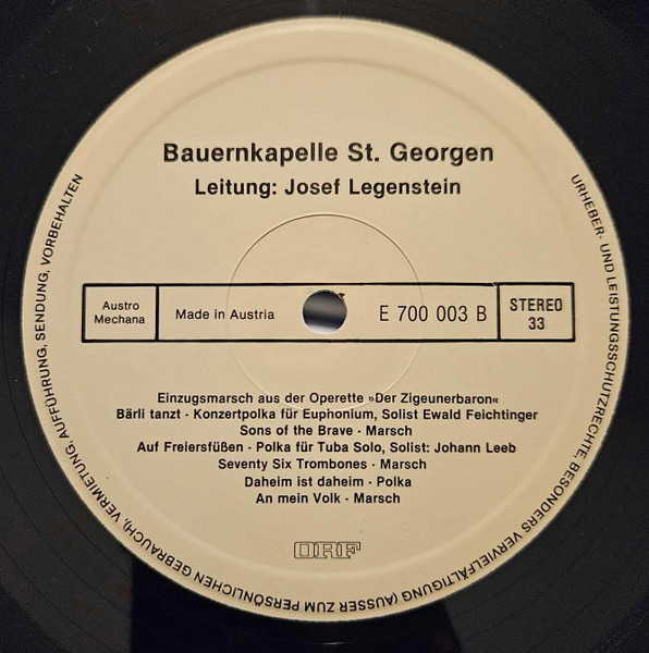 Bauernkapelle St. Georgen Leitung Josef Legenstein – Blasmusik Aus St. Georgen – Burgenland (LP)
