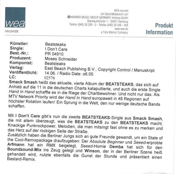 Beatsteaks – I Don’t Care As Long As You Sing (CD, Maxi, Promo)