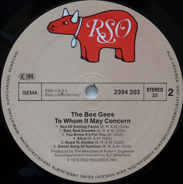 Bee Gees – To Whom It May Concern (LP, Album, RE)
