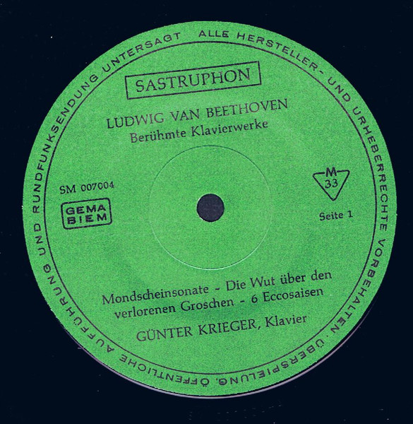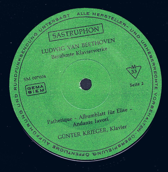 Beethoven*, Günter Krieger – Berühmte Klavierwerke (LP)