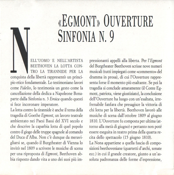 Beethoven* – Orchestra Sinfonica Della RAI Di Torino* Diretta Da Carlo Maria Giulini, Orchestra Berliner Philharmoniker* Diretti Da Herbert von Karajan – Egmont Ouverture, Sinfonia N. 9 « Corale » (CD, Album)
