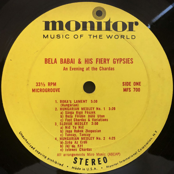 Bela Babai & His Fiery Gypsies – An Evening At The Chardas (LP, Album)