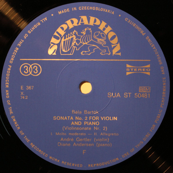 Béla Bartók, André Gertler, Diane Anderson – Sonata For Violin And Piano No 2 / Sonata For Violin Solo (LP)