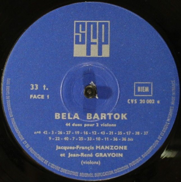 Béla Bartók – Jacques-Francis Manzone – Jean-René Gravoin – 44 Duos Pour Deux Violons (LP)