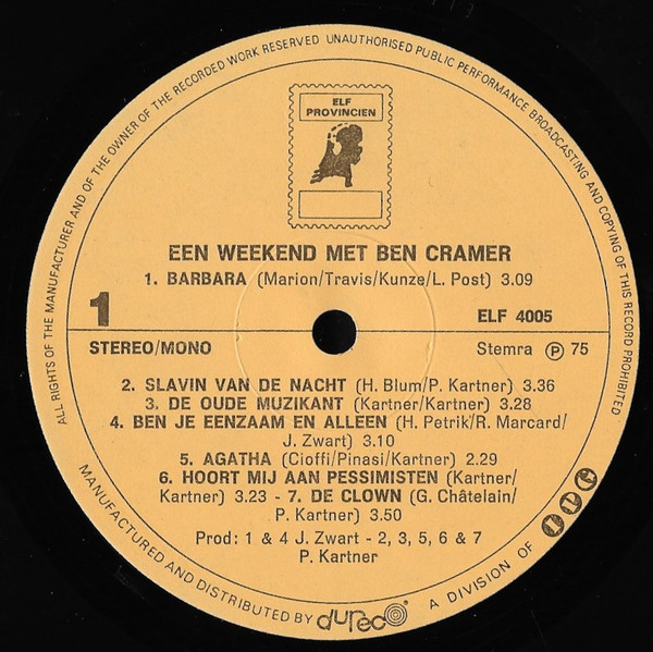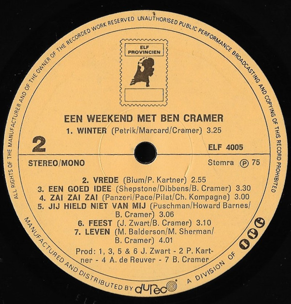 Ben Cramer – Een Weekend Met Ben Cramer (LP, Comp, Mono)