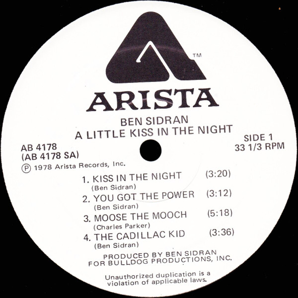 Ben Sidran – A Little Kiss In The Night (LP, Album, Promo)