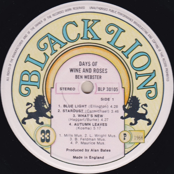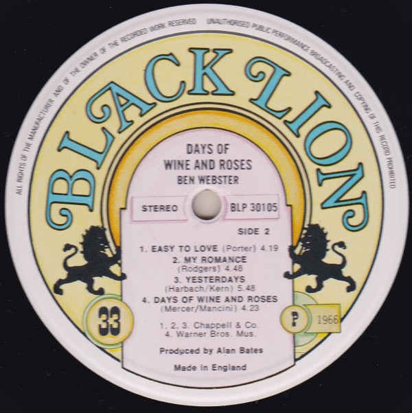 Ben Webster – Days Of Wine And Roses (LP, Album)