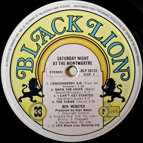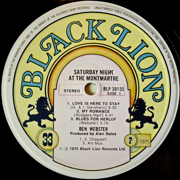 Ben Webster – Saturday Night At The Montmartre (LP, Album)