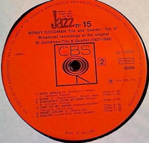 Benny Goodman Trio And The Benny Goodman Quartet – Vol. II (LP, Comp)