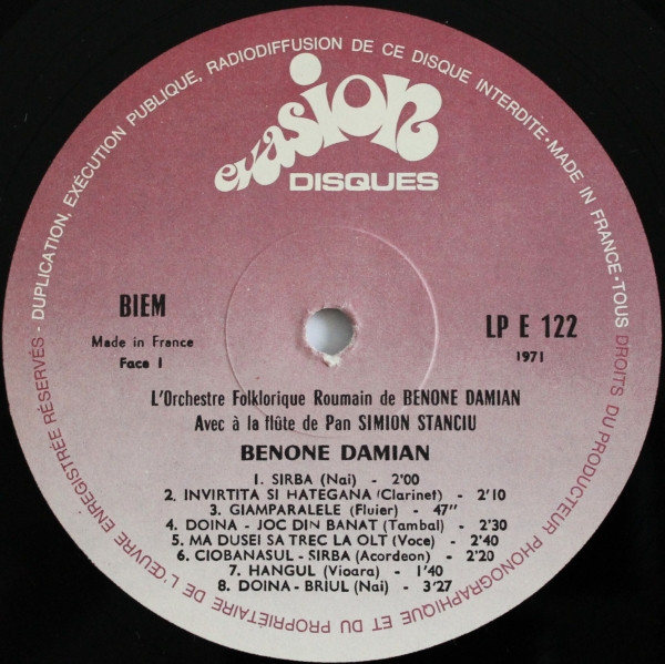 Benone Damian / Simion Stanciu – Folklore Roumain (LP, Album)