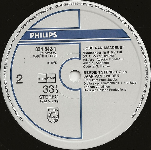Berdien Stenberg & Jaap van Zweden – Ode Aan Amadeus (LP, Album)