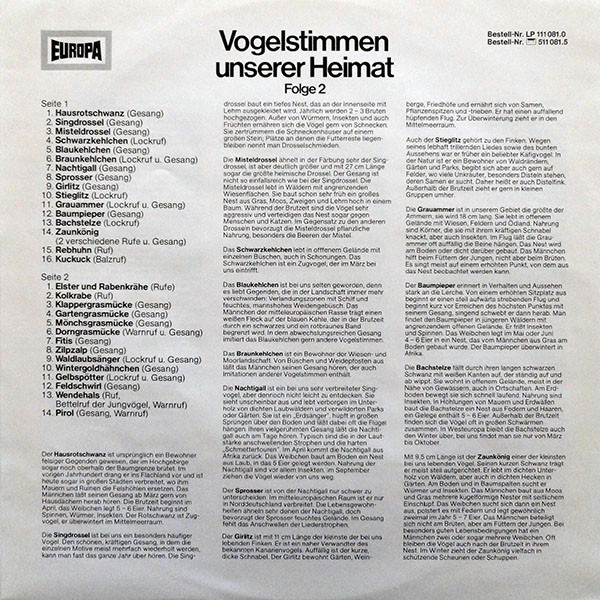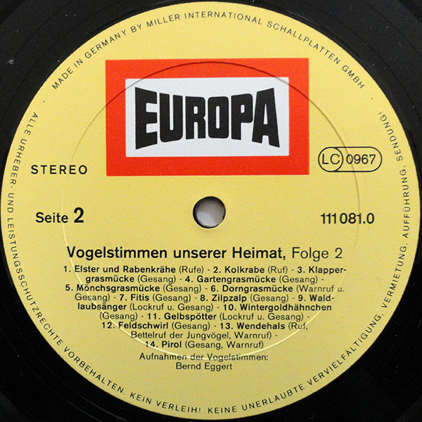 Bernd Eggert – Vogelstimmen Unserer Heimat Folge 2 (LP, RP)