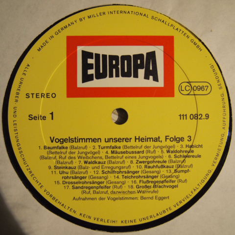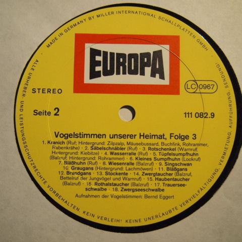 Bernd Eggert – Vogelstimmen Unserer Heimat Folge 3 (LP)