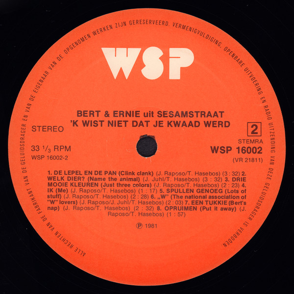 Bert & Ernie Uit Sesamstraat – ‘k Wist Niet Dat Je Kwaad Werd!! (LP, Album, RE)
