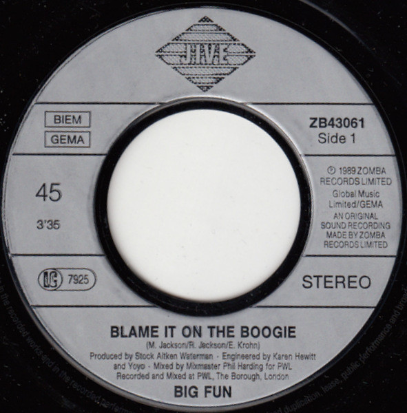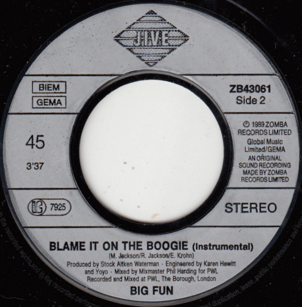 Big Fun – Blame It On The Boogie (7″, Single)