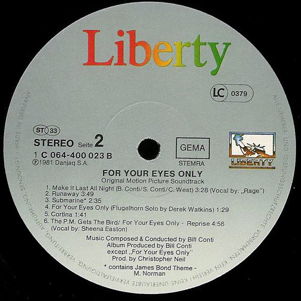 Bill Conti – For Your Eyes Only (Original Motion Picture Soundtrack) (LP, Album)