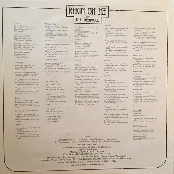 Bill Greenwood (2) – Reign On Me (LP, Album)