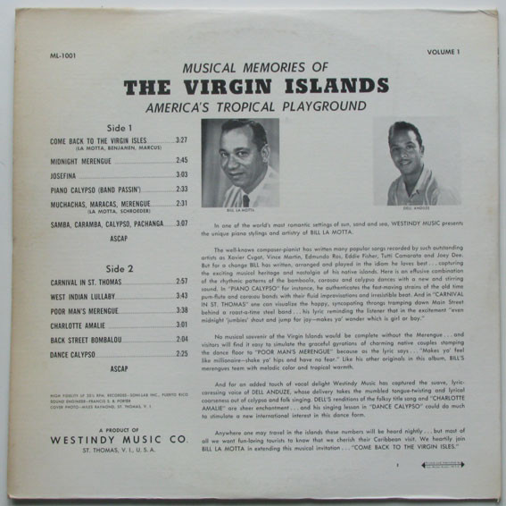 Bill La Motta – Come Back To The Virgin Isles (The Compositions Of Bill La Motta, His Piano & Orchestra) (LP, Album)