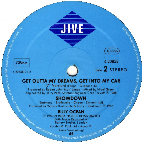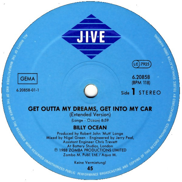 Billy Ocean – Get Outta My Dreams, Get Into My Car (12″, Maxi)
