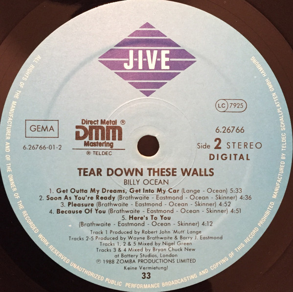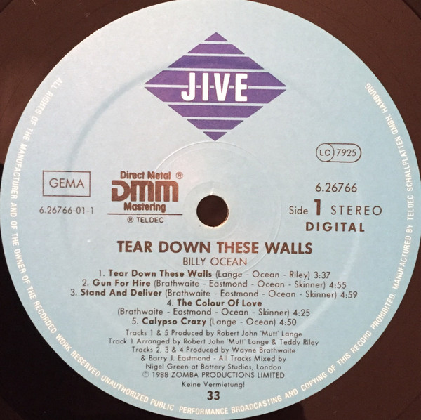Billy Ocean – Tear Down These Walls (LP, Album, DMM)