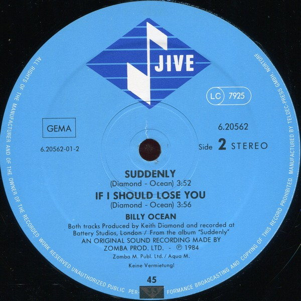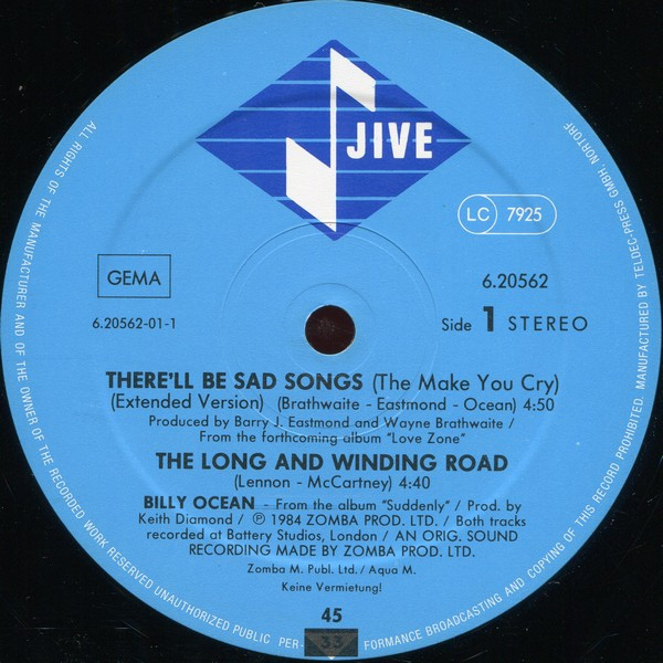 Billy Ocean – There’ll Be Sad Songs (To Make You Cry) (12″, Maxi)